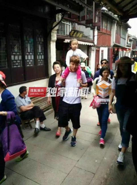 人肉代步机!甜馨坐在爸爸脖子上游苏州