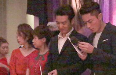 霍建华候场自顾玩话筒 与一旁男星忙热聊