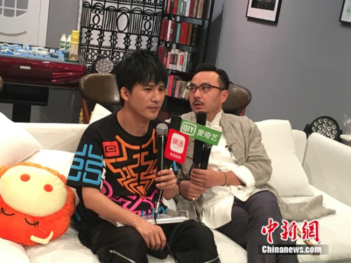 大张伟(左)、汪涵(右)接受采访。 李萌 摄
