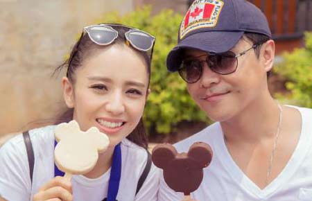 佟丽娅晒和丈夫陈思诚同游迪士尼照片 头戴米老鼠发箍