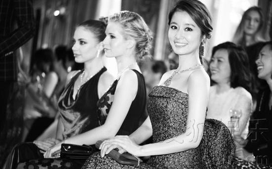 用包包遮微凸肚子?林心如亮相巴黎穿抹胸长裙