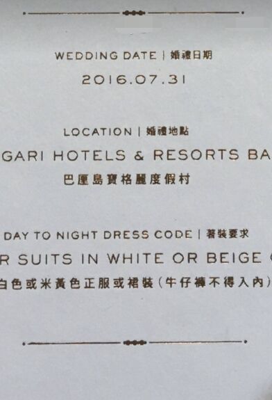 霍建华林心如婚礼喜帖曝光 宾客禁穿牛仔裤