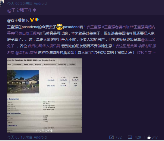 曝王宝强9套房产大部分在马蓉和其父母名下