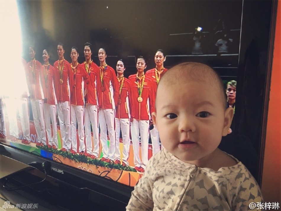 新浪娱乐讯 8月21日,中国女排奥运夺金,张梓琳晒出女儿看电视的照片,并调侃:“要不要送她去练排球?”照片中,张梓琳女儿笑容可爱,颜值相当高。