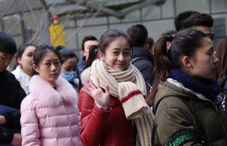 中午1点左右,张雪迎抵达中戏,头戴白色棒球帽、身穿绿色T恤白色短裤,一下车即被粉丝团团围住。和大家简单招呼后,她拿着档案资料走向新生报到处,填学籍表、扫二维码进班级微信群,再去办理宿舍手续、交费、领教材,所有手续均独自完成。