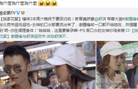 自从舒淇结婚以来,有关她准备造人的传闻就不绝于耳,日前更是有新闻曝出她在参与谢霆锋节目录制中,被禁吃油炸食品疑在备孕。
