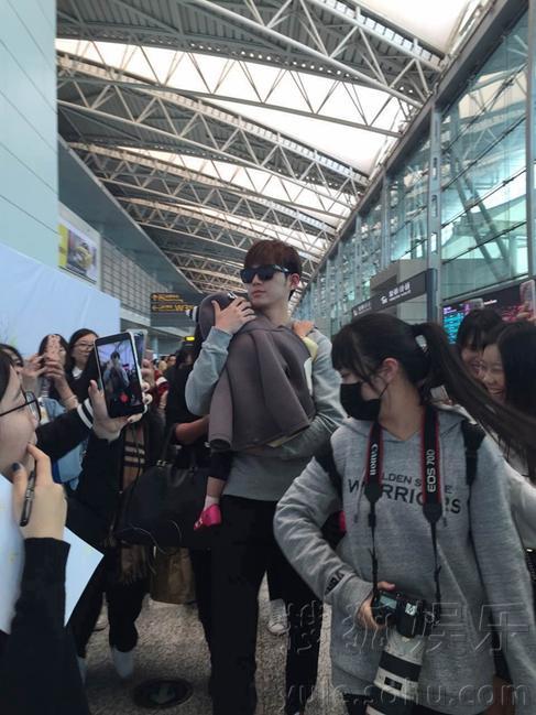 董力抱阿拉蕾现身机场。