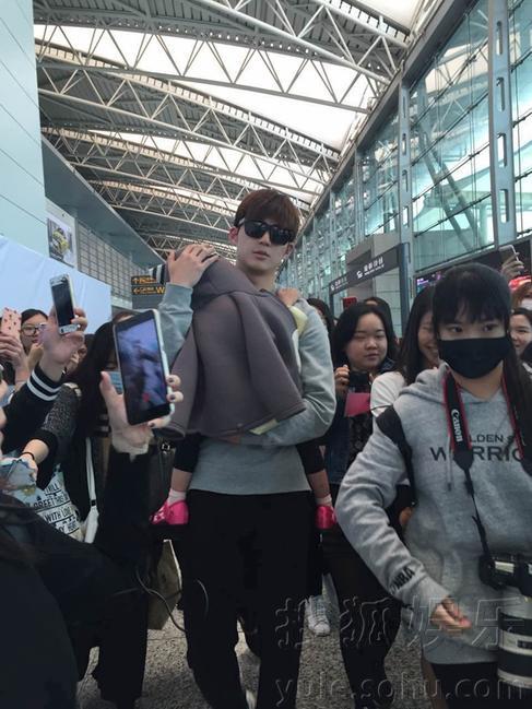 董力抱阿拉蕾现身机场 全程保护爸爸力MAX