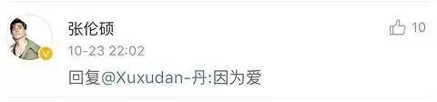 有网友说想不通为什么会选择年纪大的钟丽缇,张伦硕直接回:因为爱。(好man)