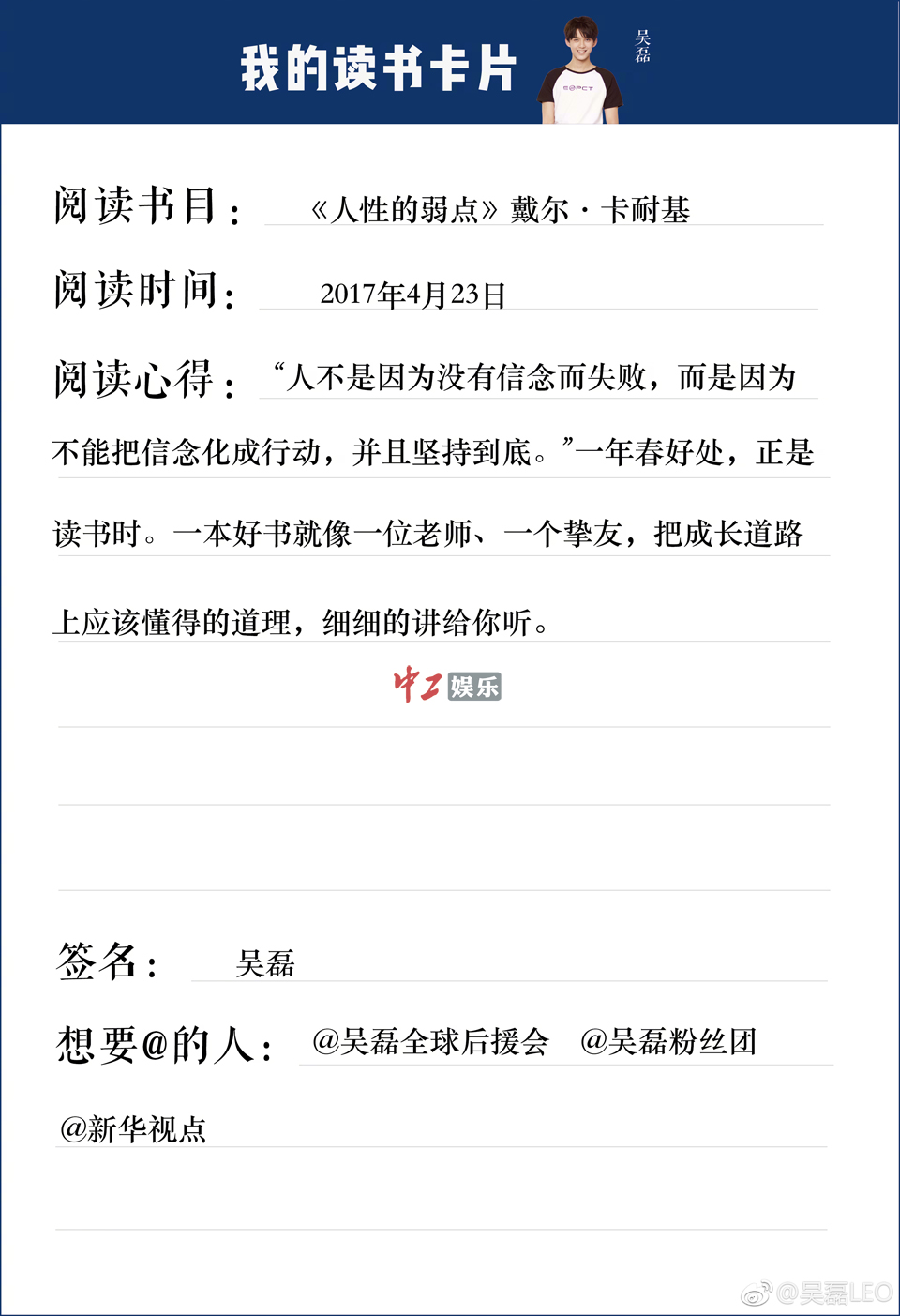 世界读书日即将到来,演员李光洁受邀参加相关读书活动,迎接世界读书日的到来。以“读书人”形象身体力行,倡导阅读并带动大众阅读的热情,呼吁2017做一名读书人,并分享自己的读书经验。