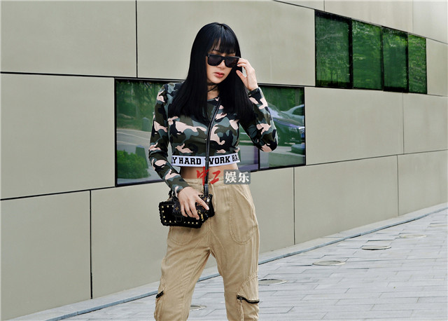 张咪高腰迷彩上衣露出小蛮腰 0赘肉腰线不输90后