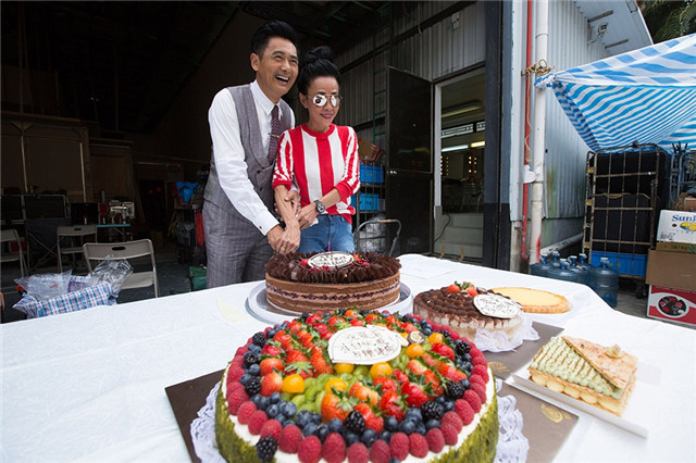 周润发生日郭富城“献吻” 《无双》百人出动庆祝