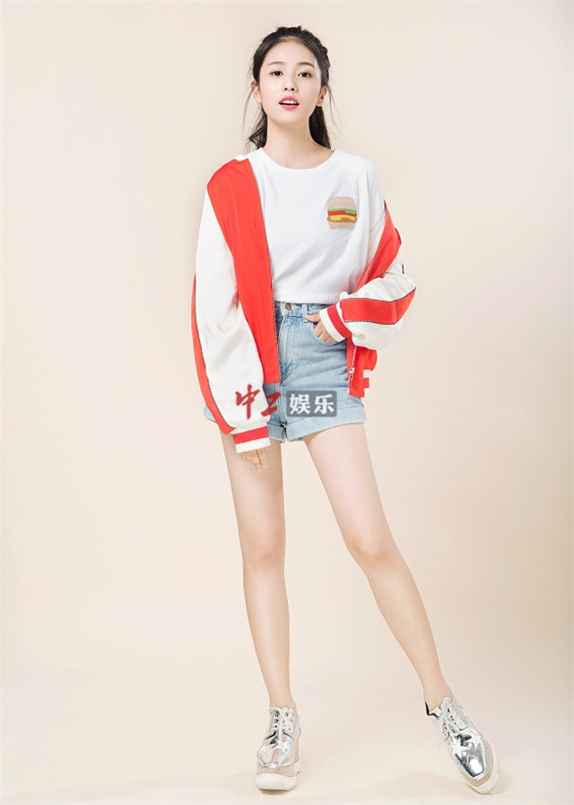随意梳起的马尾显得元气满满,大长腿吸睛。