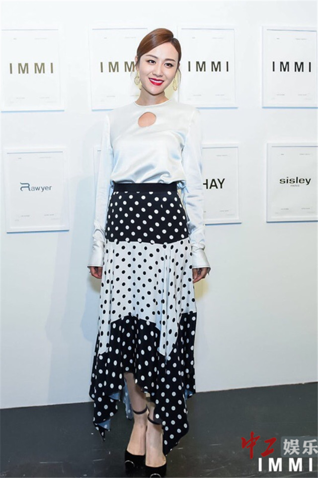 叶一茜受邀看秀 清新波点裙力压群芳