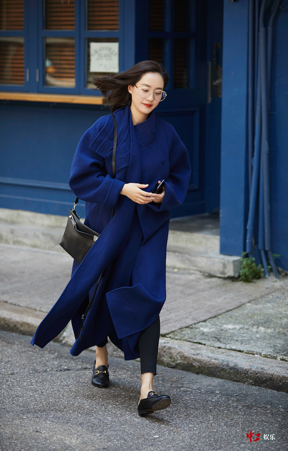 中工娱乐2017年12月20日报道 近日,女星王智一袭蓝色毛呢大衣出街,她戴着大框眼镜,整体造型利落干净又超有个性。王智这身look穿出自己随性洒脱的态度,乐福鞋、打底裤、单肩包皆为沉稳的低调黑,而一抹红唇则点亮了她的好气色。