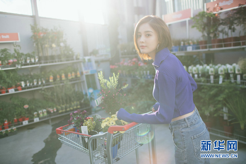 娜扎曝文艺气质写真 变身花房姑娘挑盆栽