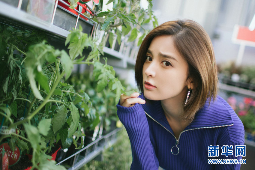 娜扎曝文艺气质写真 变身花房姑娘挑盆栽