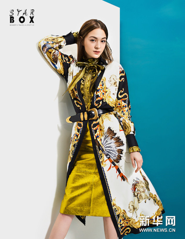 拍摄现场,张榕容以各种早春时尚Look呈现出丰富多元的时尚表现力,卡其色背带裙搭配淡紫色针织衫,复古圆檐帽与俏皮的眼神,让张榕容更显甜美灵动,而一身Versace经典印花系列长裙叠穿金属色套裙的造型又十分高贵撩人,不羁的眼神与修长白皙的双腿,俨然将帅气与性感融合得十分完美。即便是在没有任何饰品装扮的情况下,简简单单的黑色廓形高领毛衫也令张榕容散发出温柔淡雅的女人味,干净清新的画面更加突显出张榕容天然去雕饰的美。