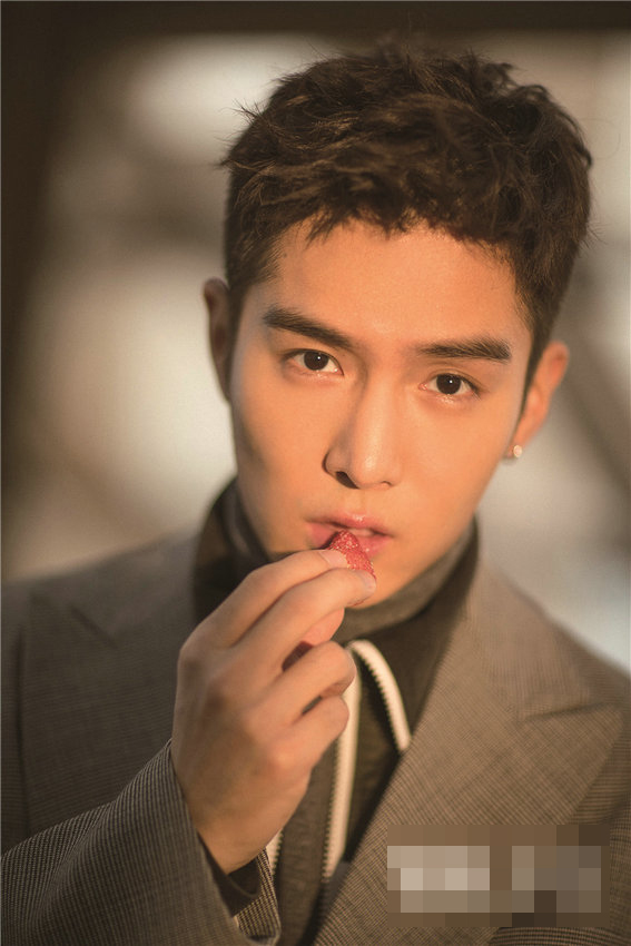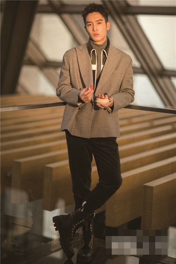 休闲格纹西装造型的盛一伦手捧草莓蛋糕直面镜头,尽显知性绅士范儿,整组写真透露出阳光温热岁月静好即视感。