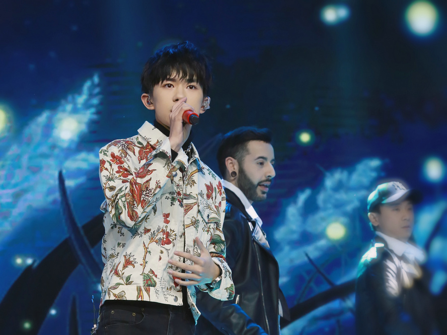 当晚,易烊千玺还与组合其他成员一起带来《我们的时光》、《躲猫猫》两首歌曲表演,白色印花外套造型,清新自然,光影之下少年感十足。作为当代正能量偶像,易烊千玺在接受采访时表示作为新鲜血液要与哥哥姐姐们多学习,了解更多的科技知识。易烊千玺此次出席活动的两套造型风格迥异,却轻松驾驭,完美演绎印花少年与西装绅士。