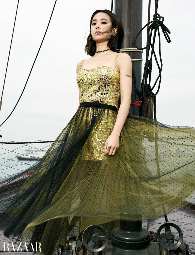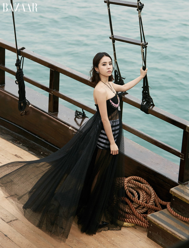 中分Lob发型让本就小巧的脸型愈加精致。黑纱长裙搭配黑白条纹短裤的造型成熟魅惑,而金色亮片吊带裙与半身纱裙的搭配又凸显出蔡依林姣好的身形,高冷自信的眼神流露出洞察世事的沉静。拍摄当天巧遇香港入冬以来最强的一次寒流,蔡依林无惧低温,身着单薄春夏新装,在摄影师的要求下,不断往返于甲板和船舱间取景拍摄,一度因为天气寒冷冻到无法对镜头做出表情。蔡依林坦言:“上一次在这么冷的环境下拍摄,还是为《假面的告白》拍摄MV躺在雪地里的时候。”即使冷到嘴唇发白,全身僵硬,蔡依林仍不忘关心工作人员,她说:“群体任务之中,最辛苦的永远不是自己。”难得的心意,让拍摄现场的气氛变得轻松温暖。