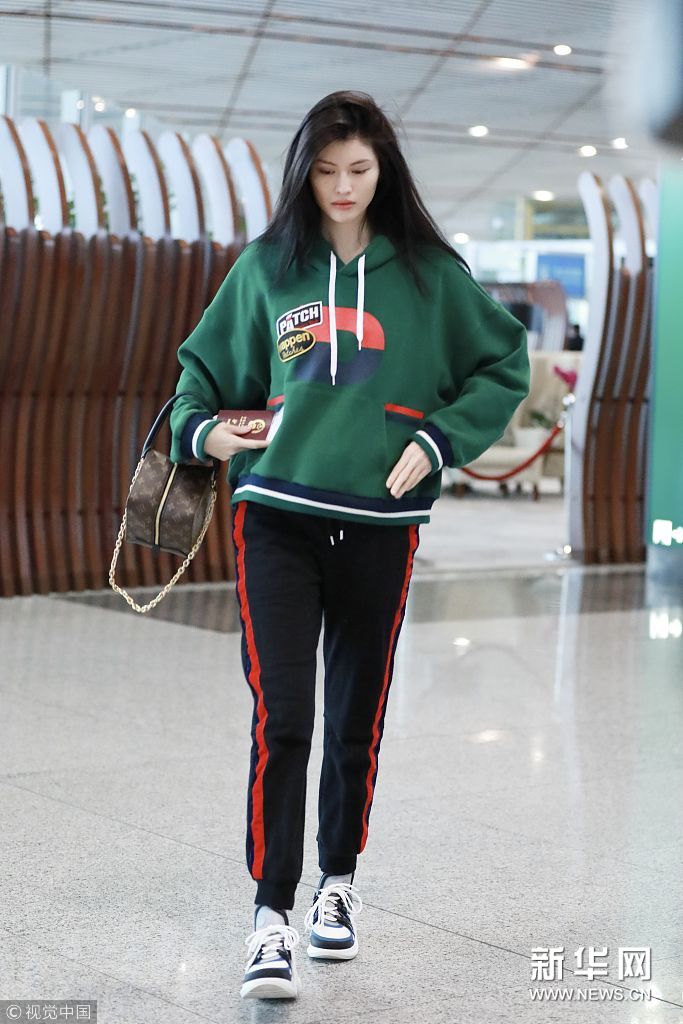 2018年3月7日,北京,何穗现身机场。