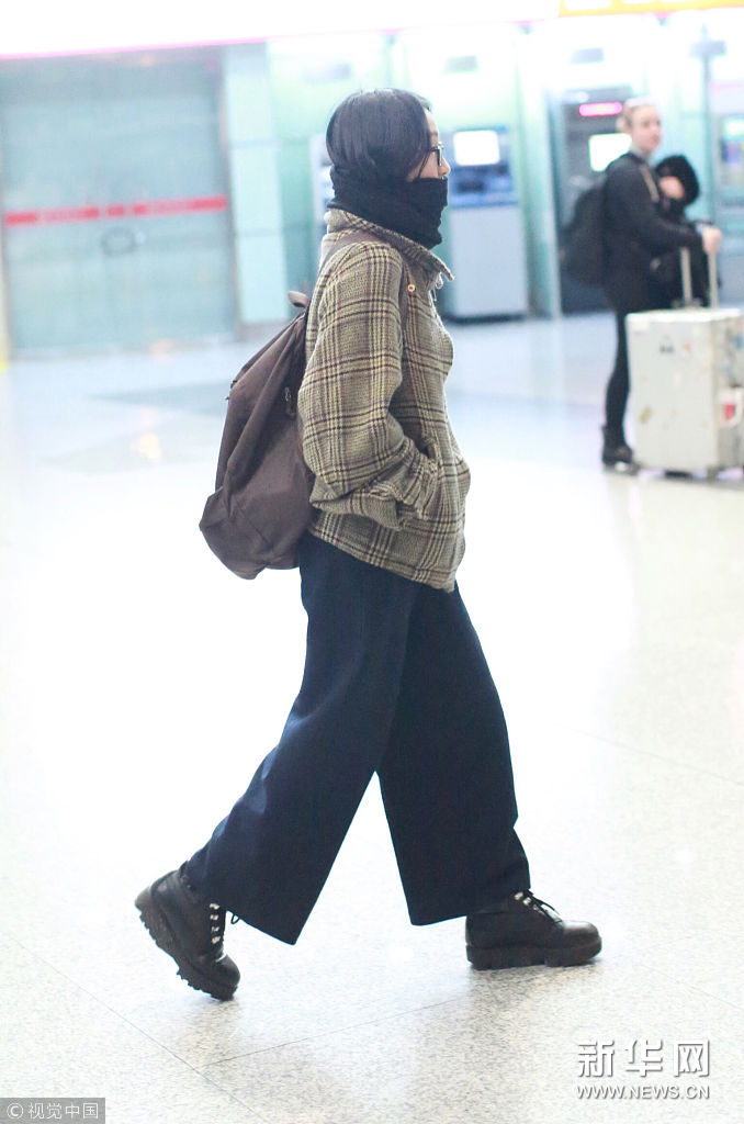 2018年3月11日讯,北京,周迅素颜现身机场,黑色围巾包裹 一身朴素打扮。