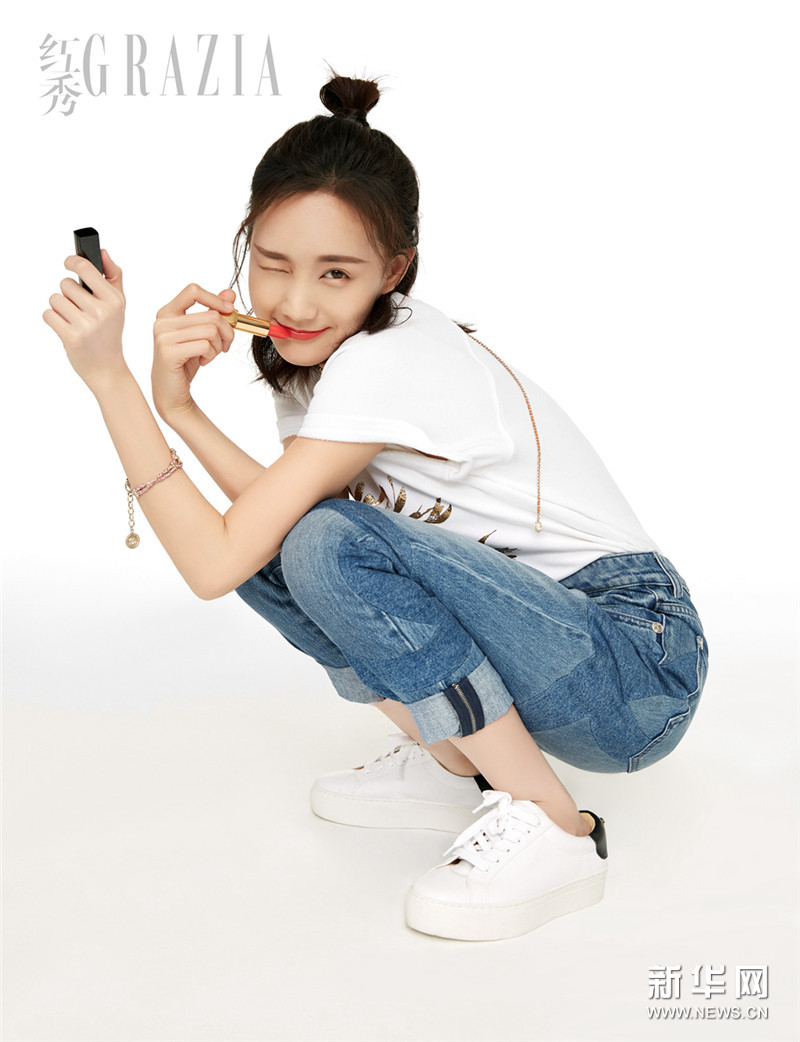 大片中,张雪迎尝试全新造型,斜扎马尾显得俏皮可爱、活力十足,变身有趣酷女孩!