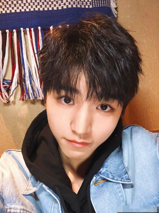 照片中,王俊凯一身蓝色牛仔装扮内搭卫衣,几缕阳光照射下来,满屏的青春活力,惺忪洒脱的发型,自带眼线的桃花眼,帅气爆棚。
