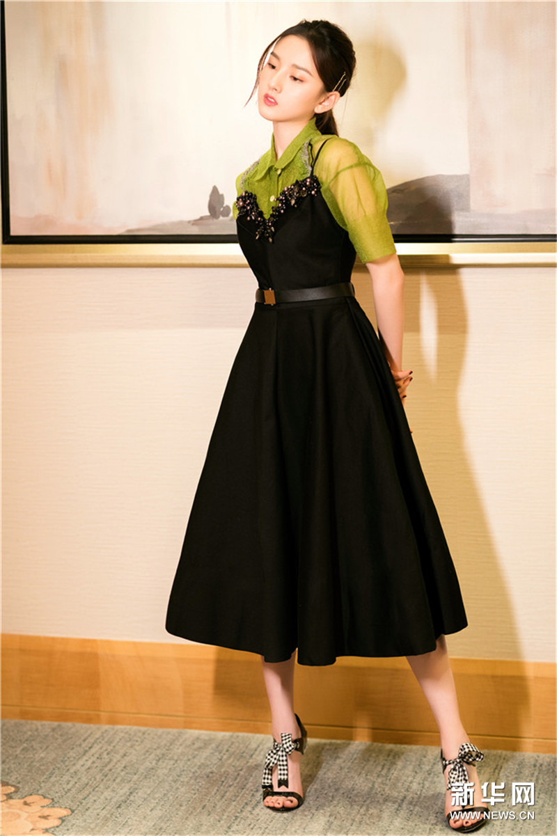 近日,宋祖儿参加某时尚活动,扎着略显蓬松的复古低马尾。她手拿黑色手袋,搭配水晶黑色连衣裙、内搭一件绿色薄纱衬衫,俏皮可爱中略带仿佛绿森林中走出的精灵女孩。