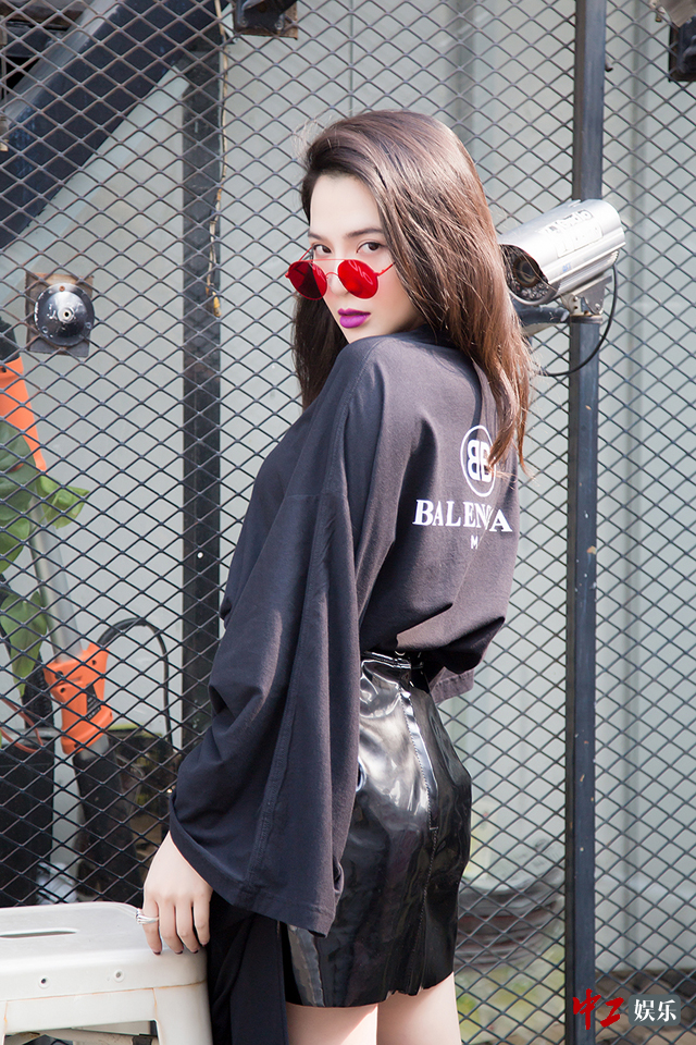 中工娱乐2018年4月11日报道 乐华娱乐旗下艺人艾菲今天曝光了一组全新春季街拍,艾菲身着黑色设计感T-shirt搭配黑色皮裙与长靴,金色的choker与红色的墨镜在深色系的服装中非常亮眼吸睛。背景的复古红色面包车更为摩登,而绿植盆栽也为图片增添了青春阳光的气息,充满摄像头的背景铁网同时又让整个风格更具现代感,艾菲充满诱惑力的眼神也让她展现了阳光却又不失魅惑的一面。