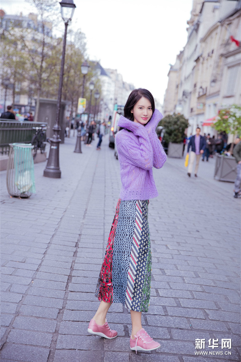 近日,金晨在法国为某知名品牌拍摄广告时的一组街拍曝光。