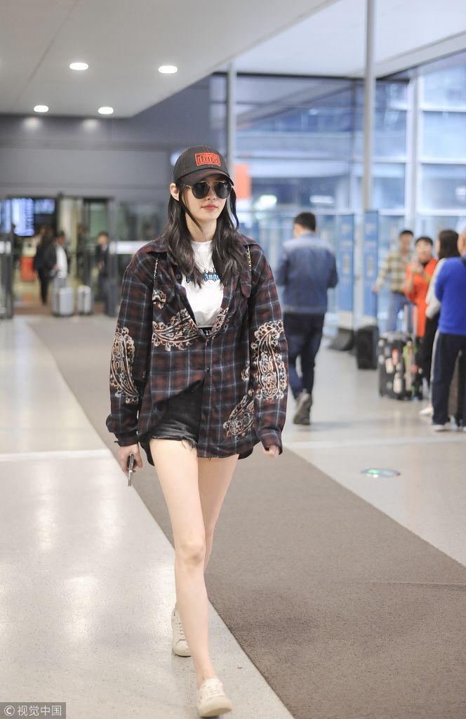 2018年4月24日, 奚梦瑶现身上海虹桥机场,“小猪佩奇”身上背变身最潮“社会人”。