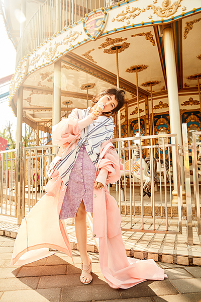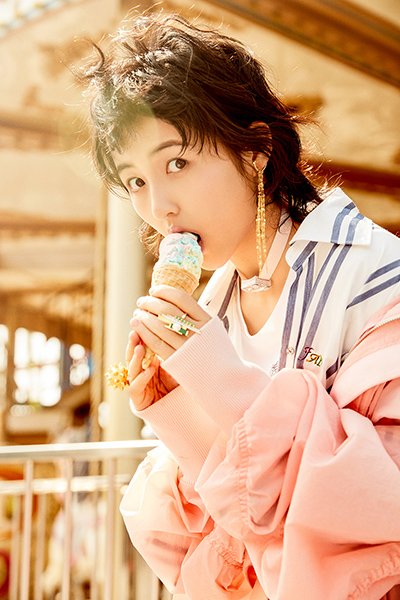 在游乐场虚幻的光影里,她无忧无虑的吃着冰激凌,少女感十足。