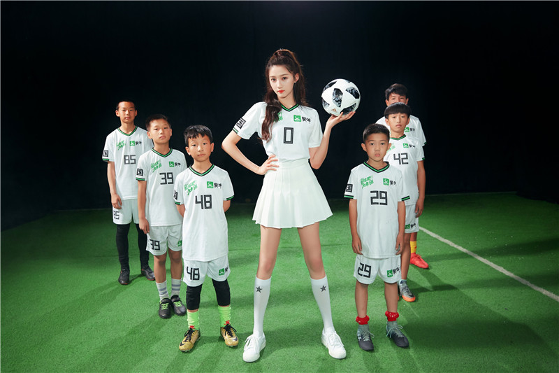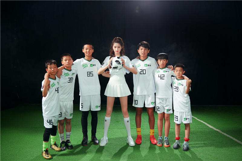 关晓彤担任中国世界杯少年队名誉队长, 6月3日现身上海球场助力少年球员出征2018世界杯。