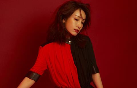 片中,秦海璐妆容精致,秀发微卷,或身着红黑拼色连体裤随性而坐,或以侧脸示人目视前方。