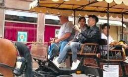 据台湾媒体报道,赵薇和苏有朋近日录制节目《中餐厅》时被拍到一起乘坐马车,开心游街的画面,更与“皇阿玛”张铁林再度同框,几人互动超有爱......