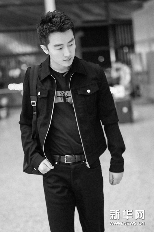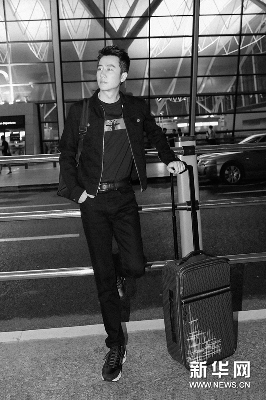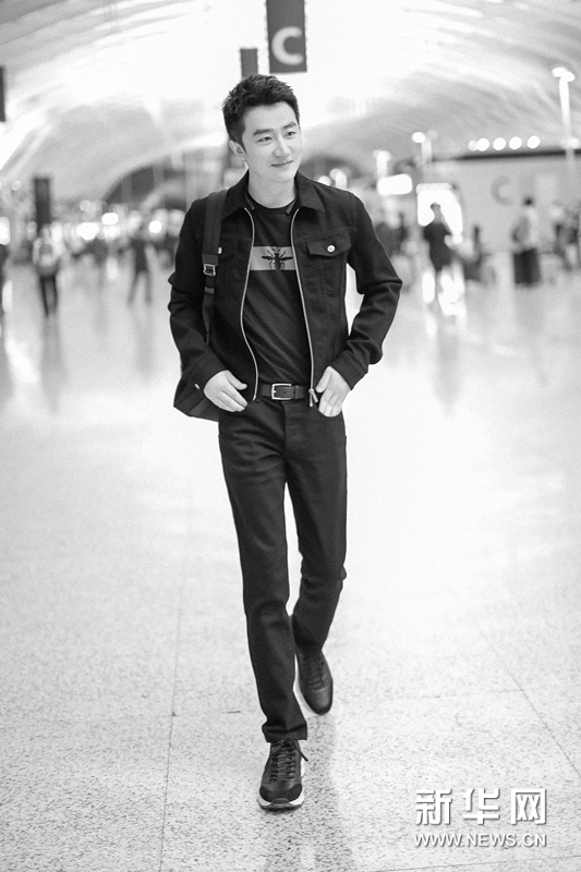 演员黄轩现身上海机场,作为某品牌中国区品牌大使连续三年受邀前往巴黎观看该品牌2019夏季男装系列发布秀。一身黑色休闲造型,内搭T恤蜜蜂图案格外亮眼。(杨静)