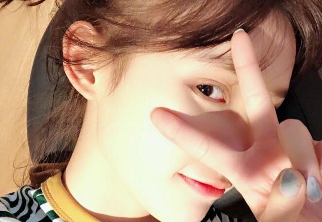 林允晒素颜自拍秀刘海造型 比耶卖萌皮肤水嫩