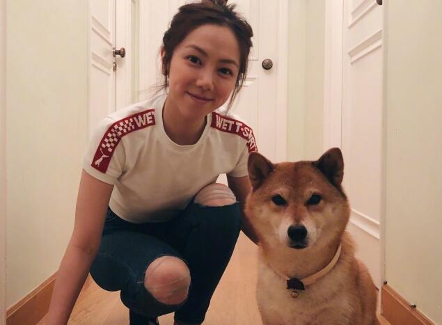 邓紫棋抚摸萌犬 自侃又“招惹”了一只狗