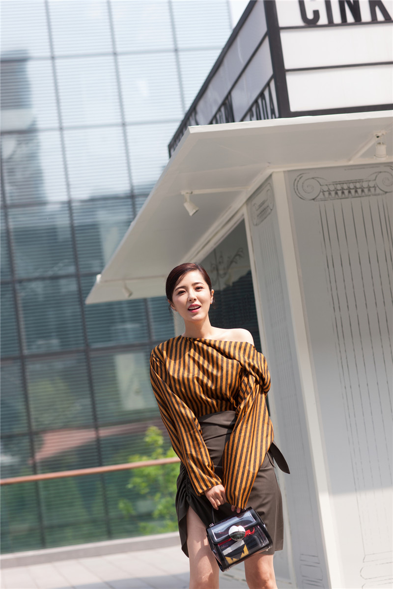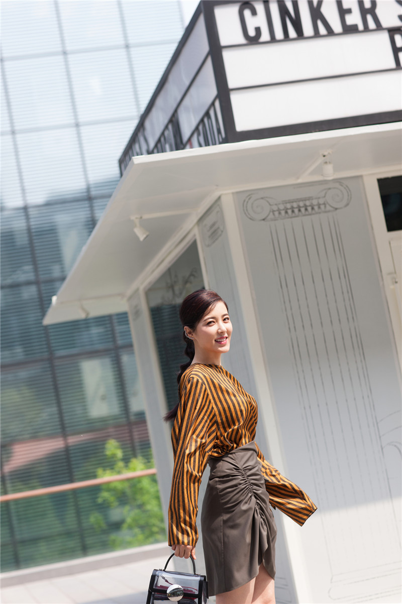近日,曾黎曝光了一组夏日写真。照片中,曾黎身穿黄棕条纹上衣,棕色短裙,整体搭配随性舒适,如夏日清风,沁人心脾。(文/杨静)