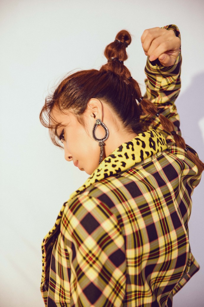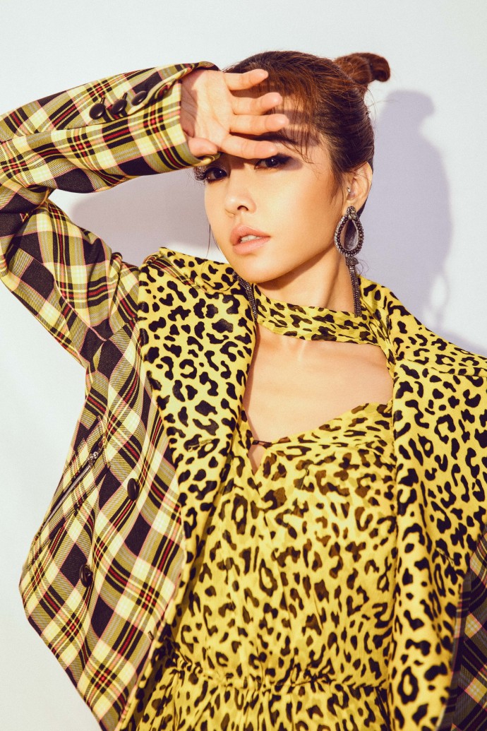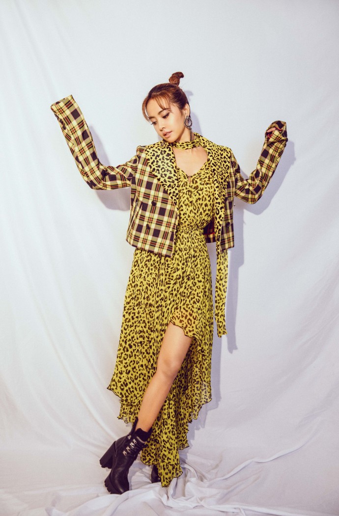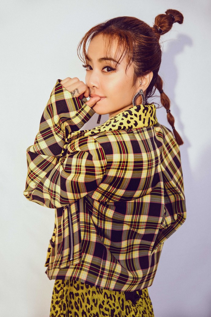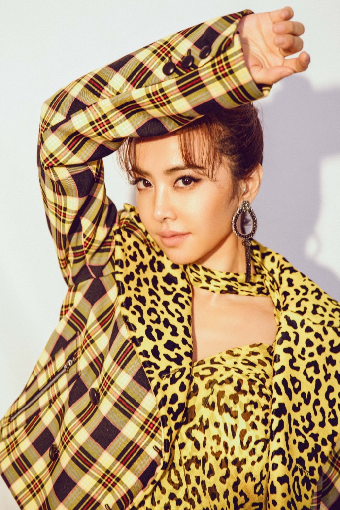 蔡依林最新写真曝光 豹纹长裙搭格子外套似小太阳