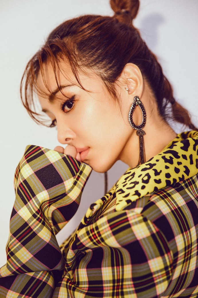 蔡依林最新写真曝光,豹纹长裙搭格子外套似小太阳