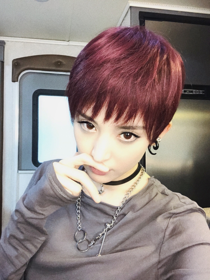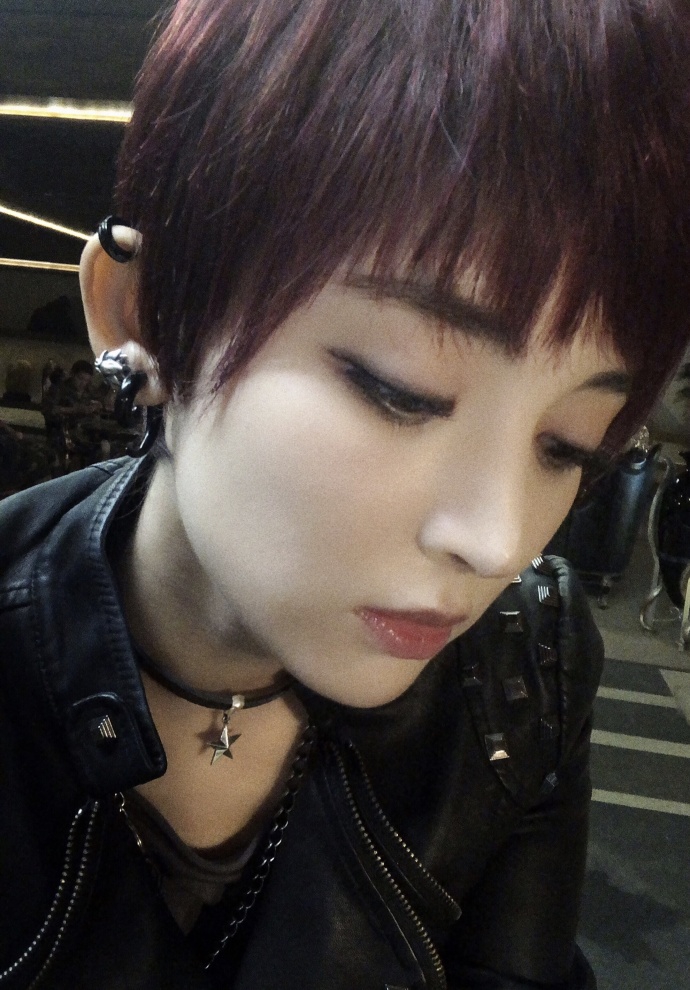 朋克女孩!娜扎穿机车外套红色短发烟熏妆帅气有型 娜扎工作室微博截图