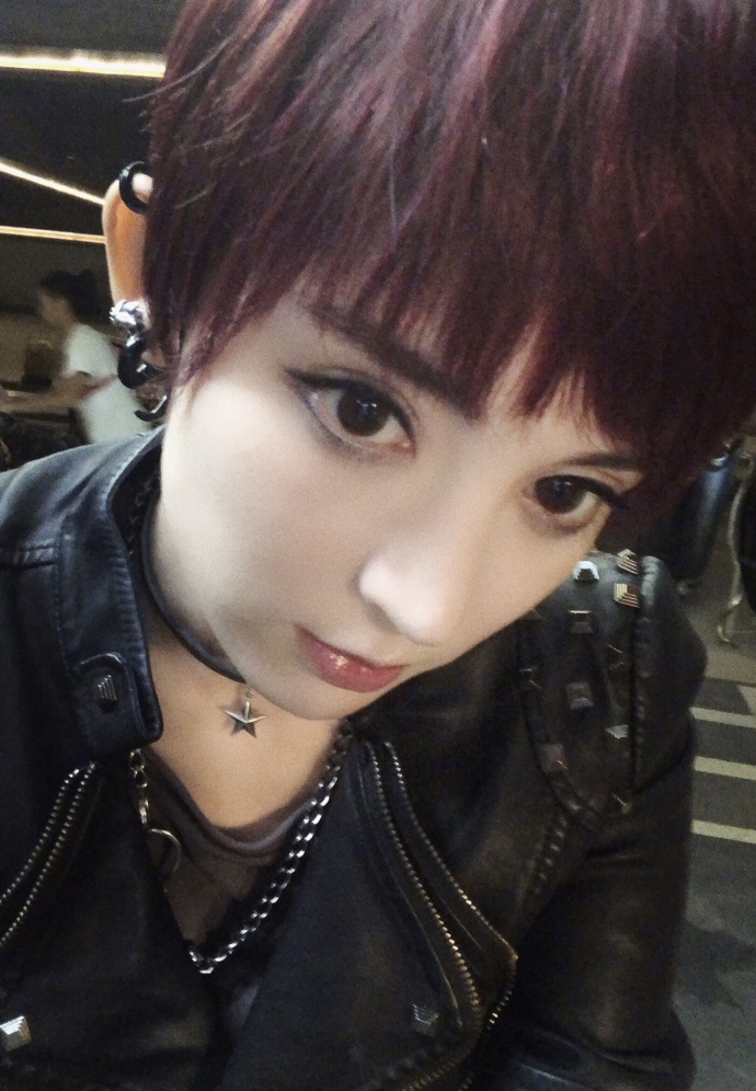 朋克女孩!娜扎穿机车外套红色短发烟熏妆帅气有型