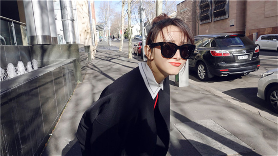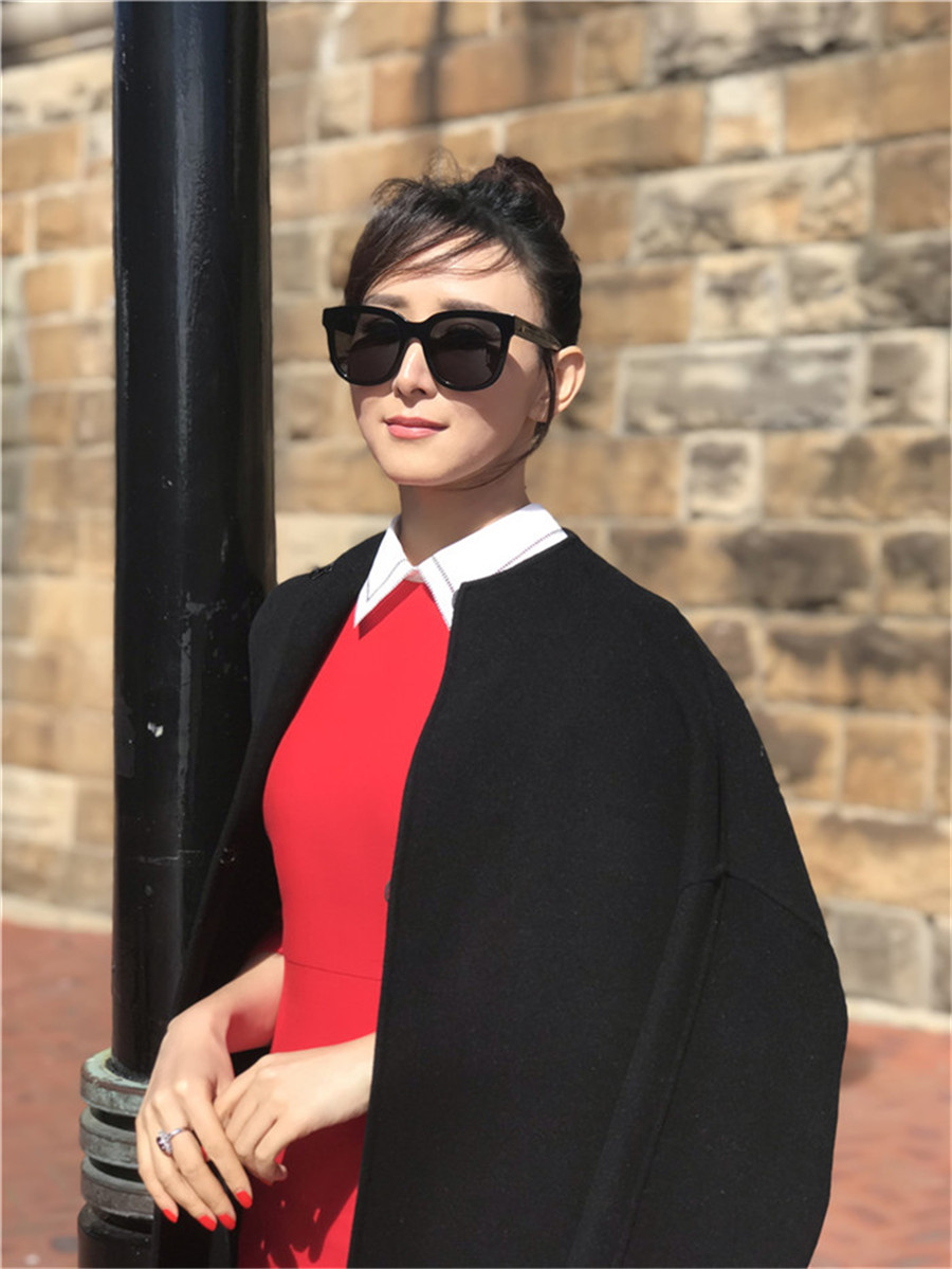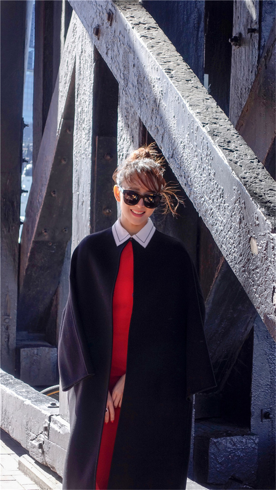 近日,胡静一组悉尼街头街拍在网络上曝光。此组街拍中,胡静一身经典红黑配色LOOK,黑色中长款风衣搭配修身红色长裙,高挑身材显露无疑;脚踩点缀水晶扣的黑色高跟鞋,发丝随风飘动,凌乱中不失美感!照片中的胡静或静坐街头,沉浸于当地街头艺人弹奏民俗风情音乐中;或面对镜头,调皮一笑。
