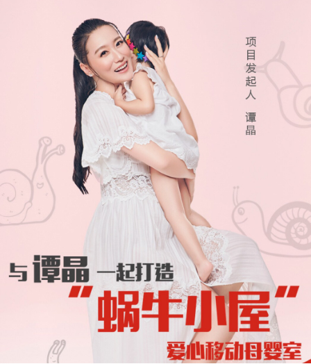 一直密切关注母婴室普及的谭晶了解到这一新型产品,通过不懈努力,由她担任发起人的“蜗牛小屋”爱心移动母婴室公益项目面世,“蜗牛小屋”这个形象又童趣的名字也是谭晶和她的孩子共同起的。这项公益活动由中国社会福利基金会联合中华志愿者协会发布执行,并预计在99公益日期间,筹集36个爱心移动母婴室,在妇幼医院、公园、游乐园等母婴出行集中的公共场所进行普及,为哺乳期妈妈和新生儿提供相对私密、安全、干净的空间,保障母婴权利,促进社会进步和发展。