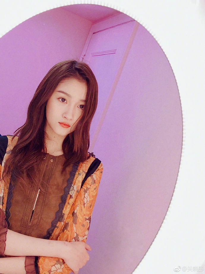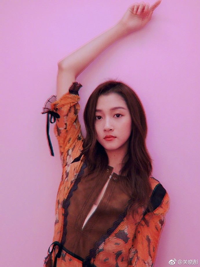 关晓彤穿印花上衣留长卷发 皮肤雪白气质优雅动人......