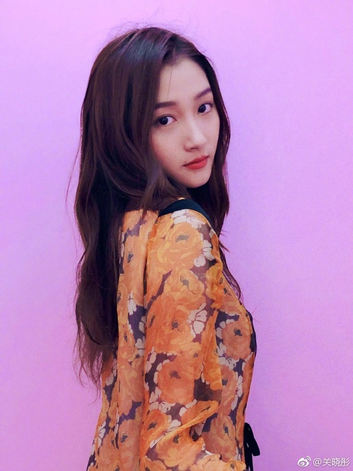 关晓彤穿印花上衣留长卷发 皮肤雪白气质优雅动人