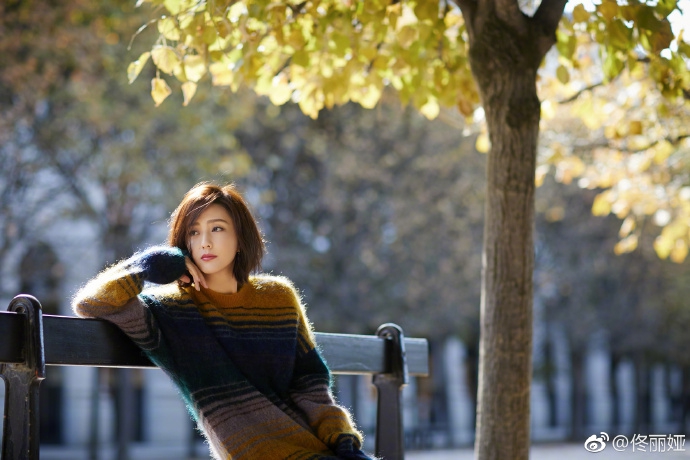 9月17日,佟丽娅在自己微博上传一组照片,并配文称:“巴黎,秋。”照片中的她身穿三色毛衣,倚靠在巴黎街头的长椅上,她沐浴在阳光下,看起来十分美丽。